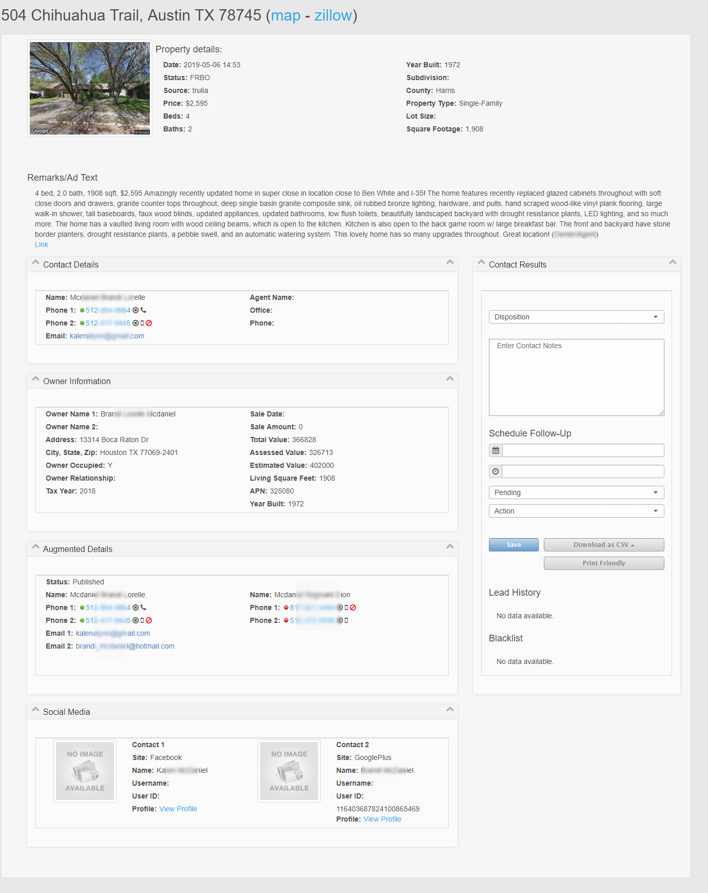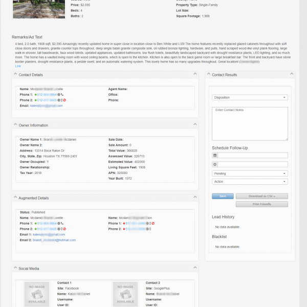 The +plus FRBO Lead Service scours the web daily to uncover listings in your area. In addition to the property details, the system will append the actual owner’s name and address along with contact information. Even when advertised by an agent or property management firm.